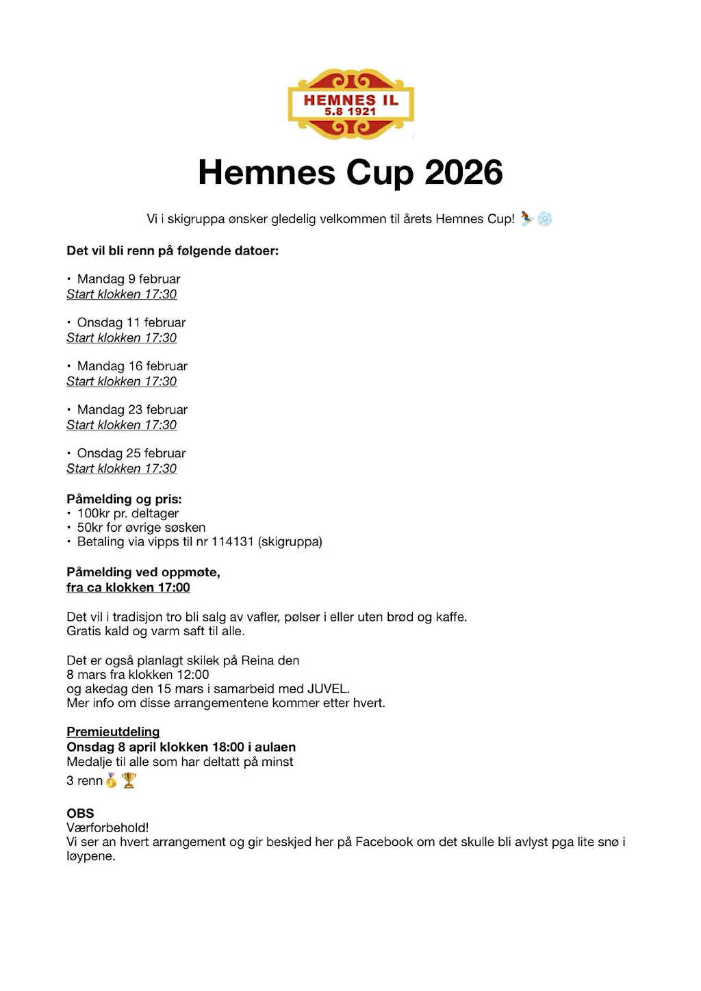 Hemnes CUP ski 2026